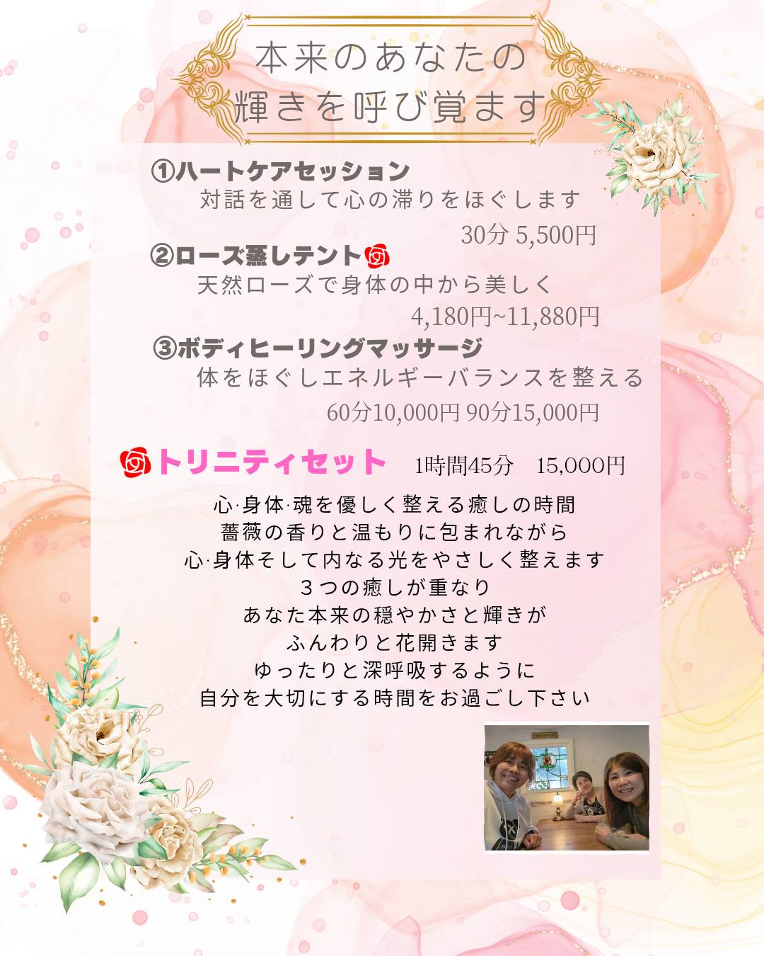 🔶お客さまの心身の状態に合わせたメニューでローズ蒸しテントに入っていただきます。